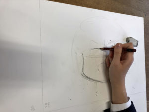 その後は、先週と同じように水張りしたキャンバスに鉛筆で下描きを・・・