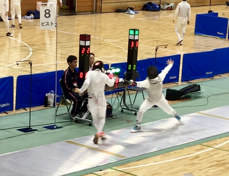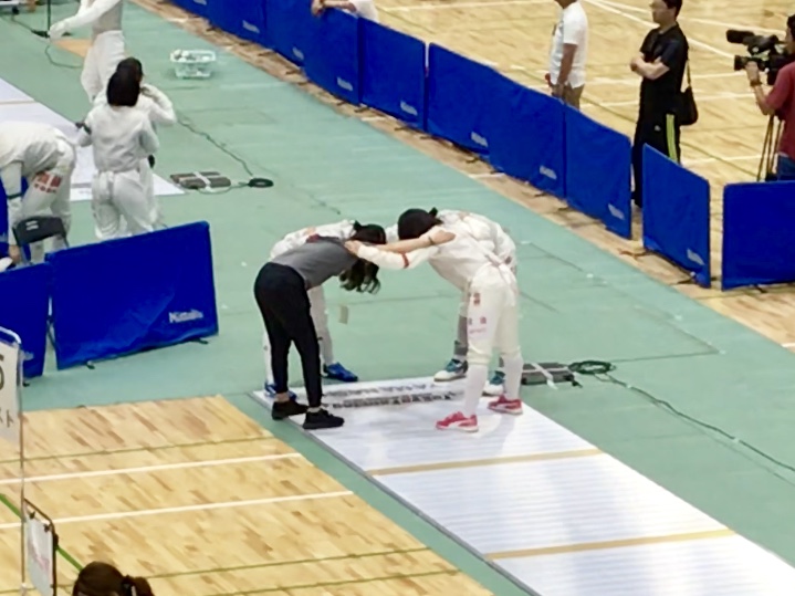 2019.06.05 令和元年度関東高等学校フェンシング大会 試合結果 5月31日(金)~6月2日(日)山梨県小瀬スポーツ公園体育館において令和元年度関東高等学校フェンシング大会・第61回関東高等学校フェンシング選手権大会が行われました。 個人フルーレ(46名出場) 益子明香里(38位) 庄司彩葉(37位) 学校対抗 対 日大習志野 4 - V5 右 2年益子 右 1年庄司 左 3年渡邉 学校対抗 円陣 前の記事へ 一覧へ戻る 次の記事へ