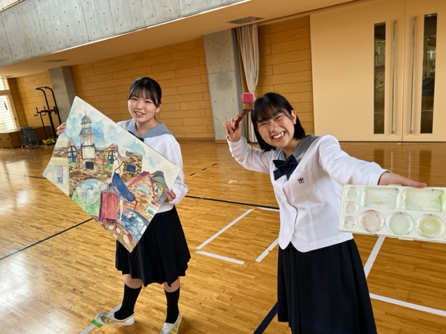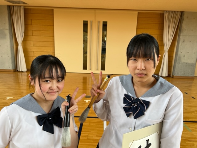 書道部は作品と筆を持っての撮影です!!
