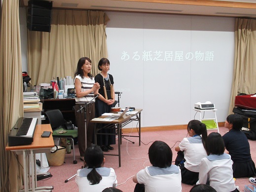 スクリーンに投影した大型の紙芝居です。