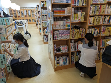 2学期からは「書架整理(棚をきれいに整えること)」を