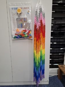 今週の活動で、千羽鶴が1組ほぼ出来上がりました。