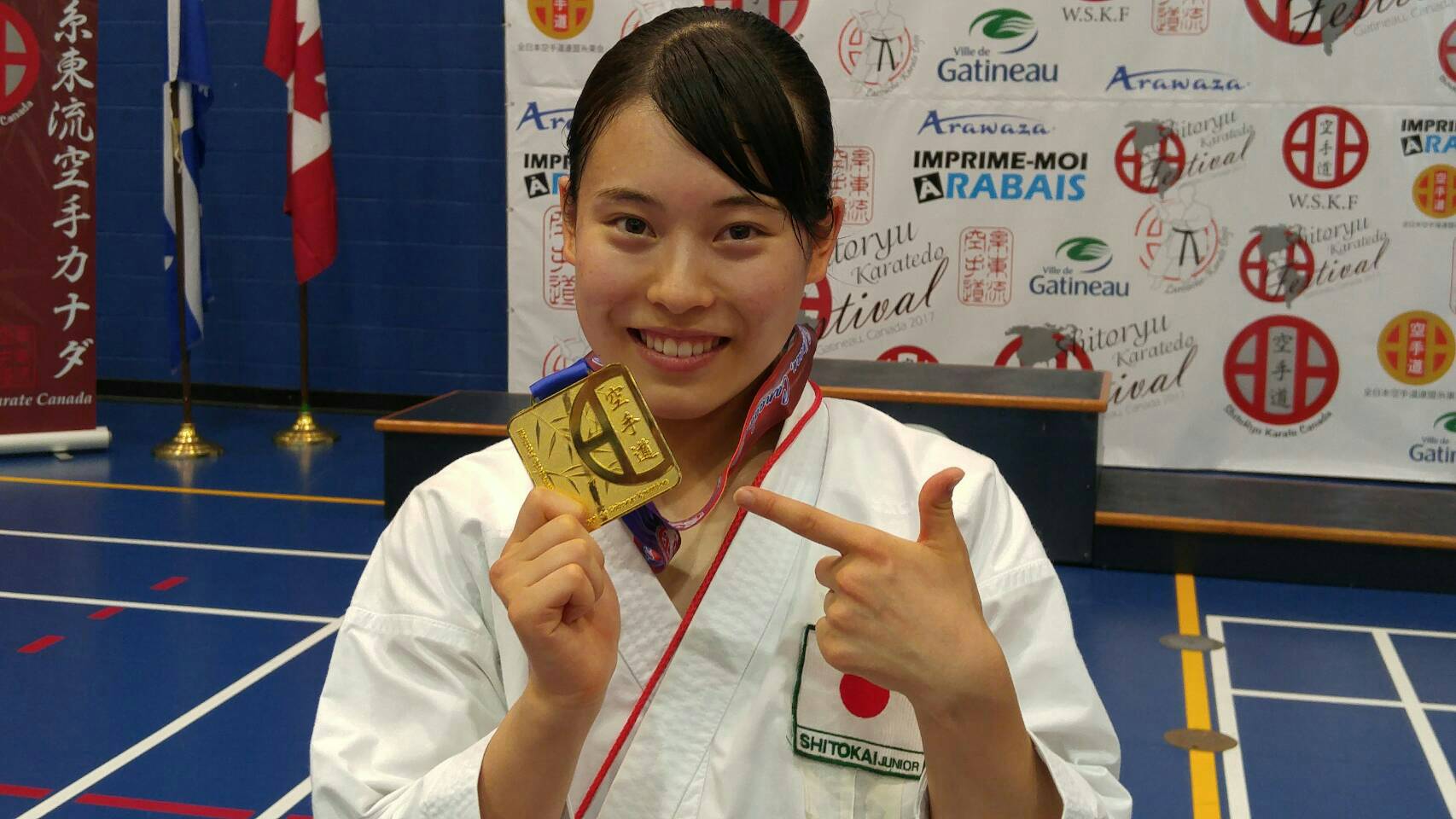 2017.08.08 第18回糸東流空手道パンアメリカン大会 標記の大会に本校空手道部、井川あかり選手が出場致しました。 期日・・・8月2日~8月8日 場所・・・カナダ 糸東流空手道インターナショナルオープン ジュニア16〜17形の部、優勝 第18回糸東流空手道パンアメリカン選手権大会 ジュニア16~17形の部、優勝 でした。異国の地での試合、優勝、よい経験が出来ましたね! おめでとうございました。 前の記事へ 一覧へ戻る 次の記事へ