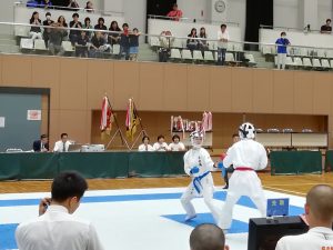 初日の個人組手では,1年生の山崎選手が強豪選手を連破し,見事ベスト4入賞を果たしました!