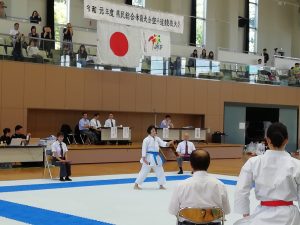 2019.06.17 令和元年茨城県民総合体育大会空手道競技会 6月16日,牛久市運動公園体育館にて表記の大会が行われました。 〇少年女子組手の部において,佐藤選手が準優勝,山崎選手・泉選手がベスト8に入りました! 佐藤選手は,23日に行われる国体最終選考会に出場します。 さらなる活躍を期待します。 〇また,成年女子形の部には,本校卒業生も参戦。 写真は井川選手。世界の舞台で活躍する選手の演武に,生徒たちも刺激を受けていました。 前の記事へ 一覧へ戻る 次の記事へ
