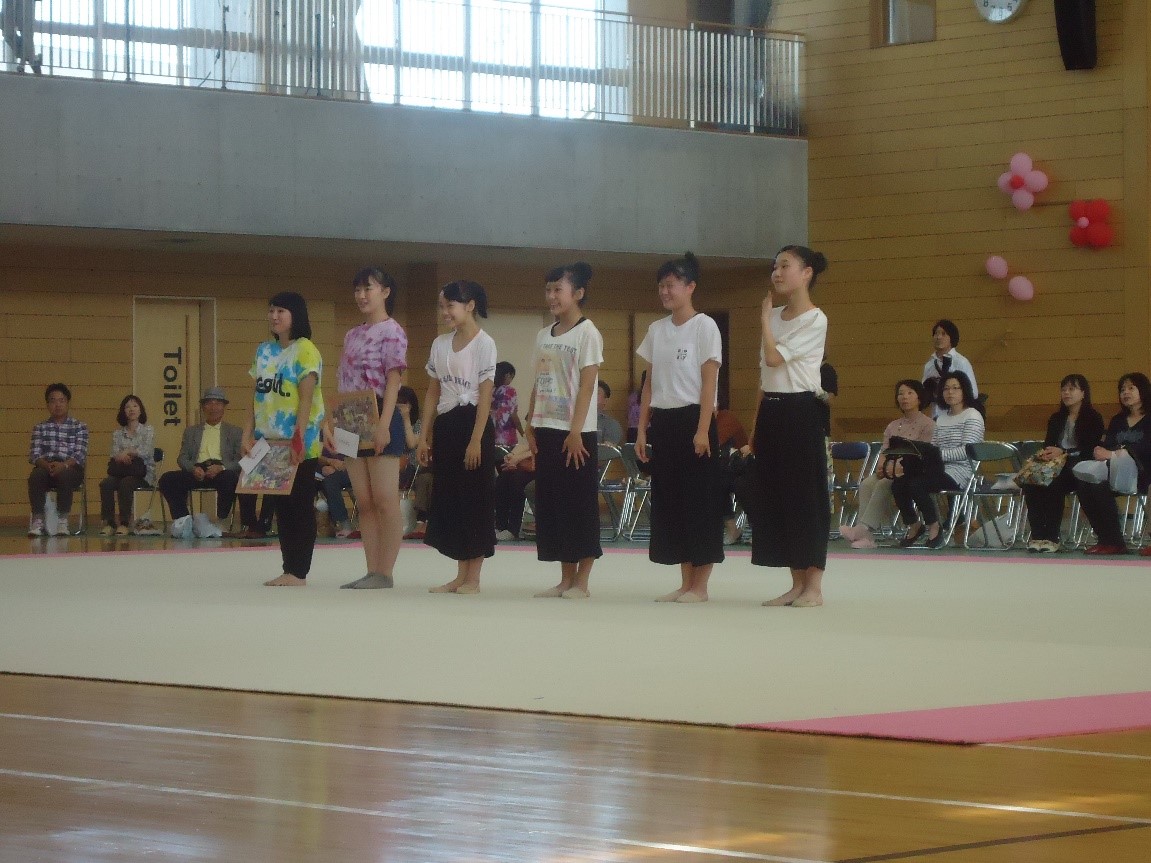 全ての演技が終わり2年生による挨拶「新体操部の発表を終わる前にこの場をお借りして引退した3年生にお礼を言わせてください!」3年生にドッキリサプライズ!「大好きです!!」という叫び声と共に写真いっぱいのコルクボードと手紙を渡しました。最後は6人揃って笑顔で「本日は見に来てくださりありがとうございました!」