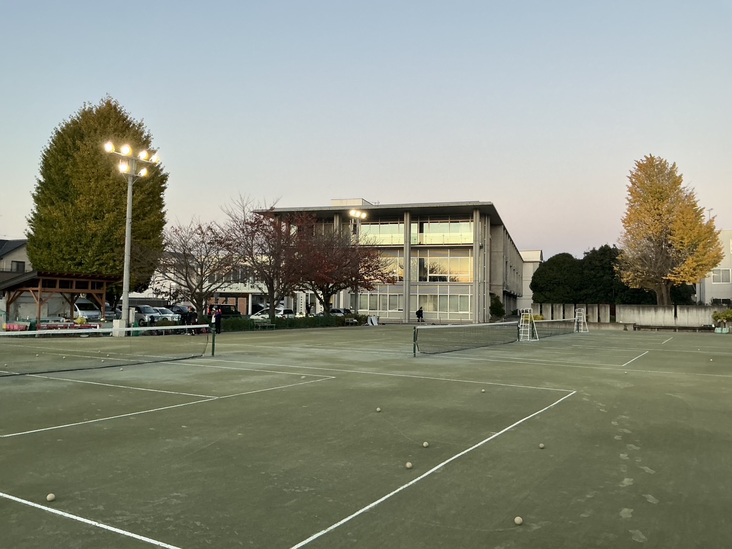 2025.11.17 紅葉はいつまで 本校の紅葉も、いよいよ終わりに近づいてきました。 テニスコート側の桜の葉はほとんど落ち、2本あるイチョウの木も、黄色に色づいた1本は半分以上散りました。 一方で、まだ緑が残り黄色くなっていないもう1本は、しっかりと葉をつけたままです。 しばらくのあいだ、テニスコートまわりの落ち葉掃除は続きそうです。 前の記事へ 一覧へ戻る 次の記事へ