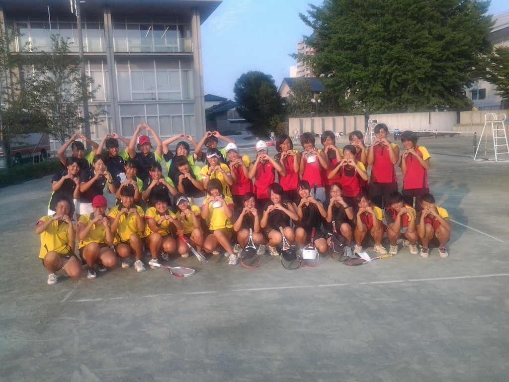 2014.07.30 可能性は? 本日のゲストは浦安高校です。 ソフトテニス大好きな選手がたくさんいるチームでした。 午前中は練習し、午後にはゲームをしました。 写真のポーズは∞! 選手全員の可能性は無限大です! 前の記事へ 一覧へ戻る 次の記事へ