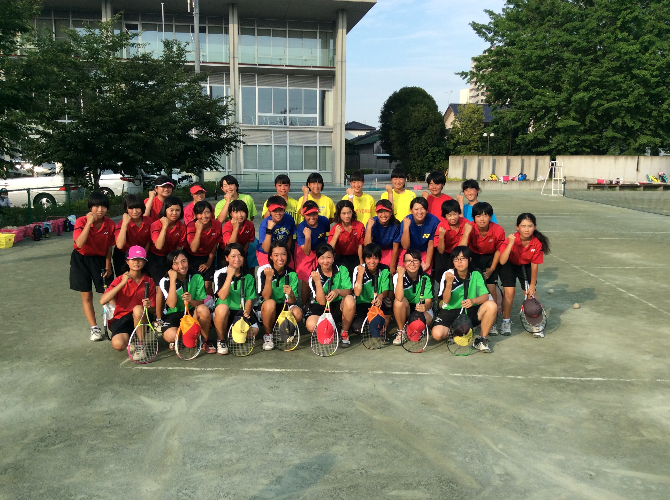 2016.07.03 今週末も暑かった。 気温30度を越す真夏日でした。 今日もテニスコートには元気に走るプレーヤーがたくさんいました。 本日のゲストは美野里中学校です。 中央地区総体を前にしたチームと一緒に、暑さに負けず充実した練習ができました。 前の記事へ 一覧へ戻る 次の記事へ