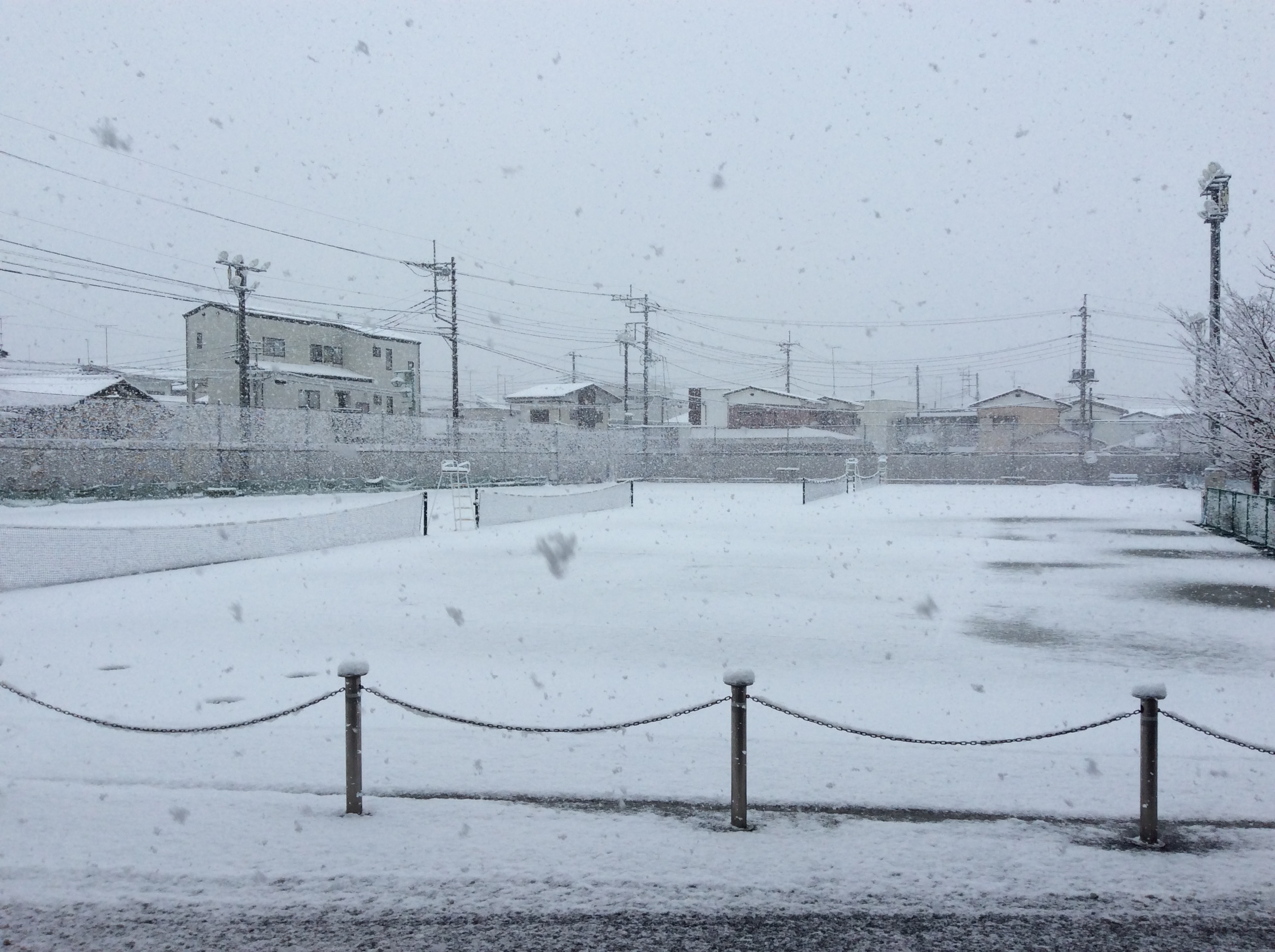 2017.02.10 突然の‥ 早朝に降り出した雪が積もり一面銀世界となりました。 予報では雪が降ると聞いていましたが、まさか積もるとは‥。 テニスコートもこのような感じです。 しかし、本日の放課後はこのような感じです。 前の記事へ 一覧へ戻る 次の記事へ