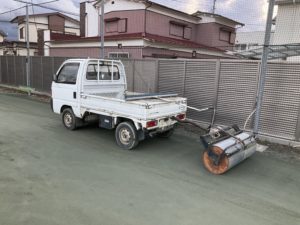 2023.01.19 大活躍 コート整備に使っている軽トラ&ローラー。 少し前にローラーのメンテナンスをして、2日前には軽トラのタイヤに空気を入れました。 寒さにも負けず、動きも軽くとても快調です。 いつもありがとうございます。 綺麗に整備されたコートなので練習前からワクワクし、充実した内容で練習後もワクワクです。 前の記事へ 一覧へ戻る 次の記事へ